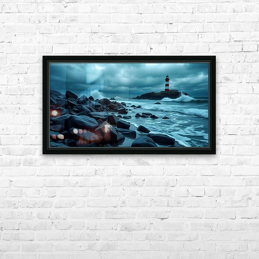 Lighthouse Coastal Cloudy Day  HD Metal print with Floating Frame on Back