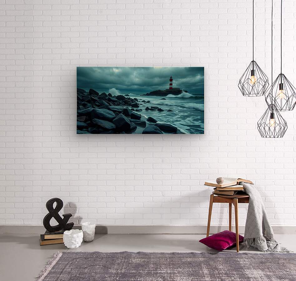 Lighthouse Coastal Cloudy Day  Wood print