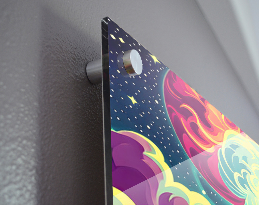 Fine Art made from a Premium polished, best-in-class, 99.9% optically pure acrylic and the latest Flatbed printing craftmanship.