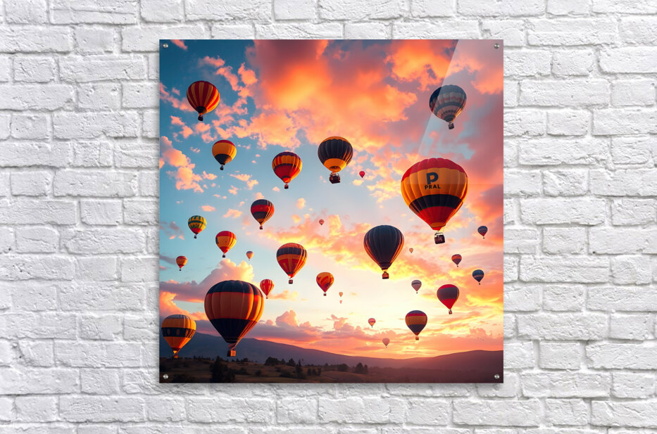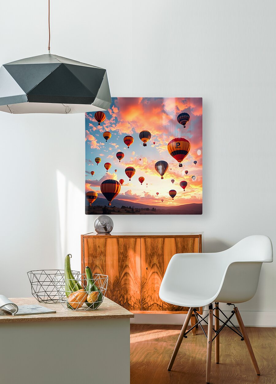 Hot Air Ballon Sunset  HD Metal print with Floating Frame on Back