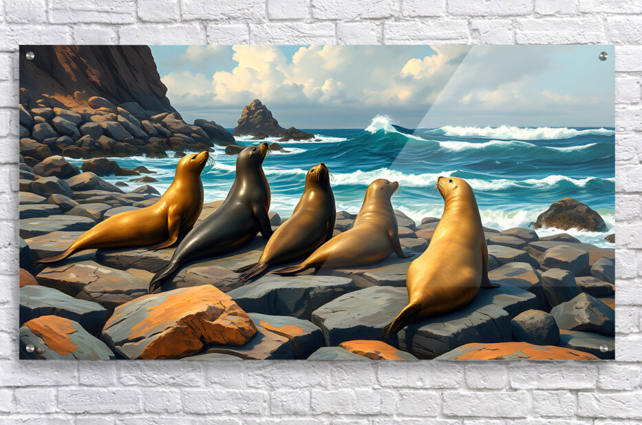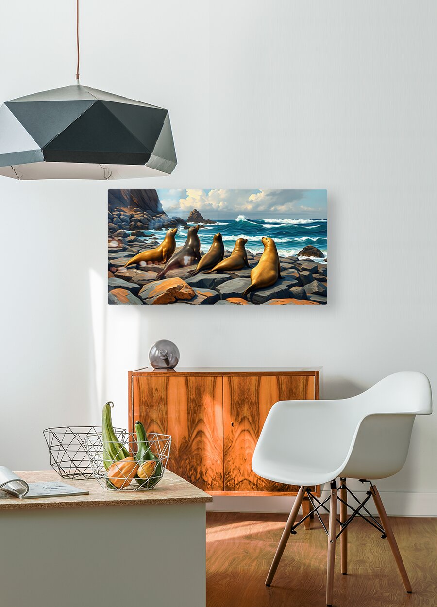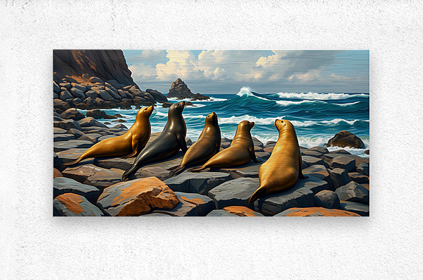 Five Seals Watching Waves HD Sublimation Metal print