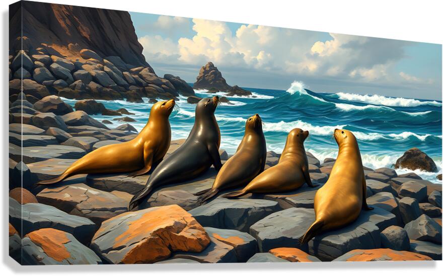 Get this artwork "Five Seals Watching Waves" in a framed print.