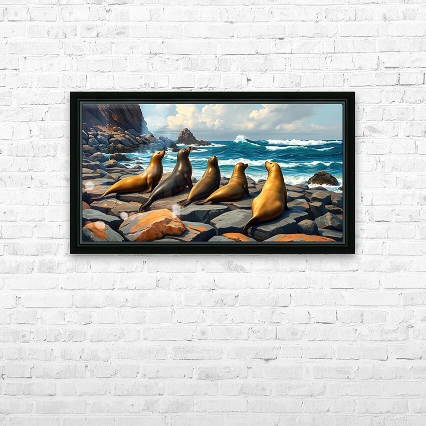 Five Seals Watching Waves  HD Metal print with Floating Frame on Back