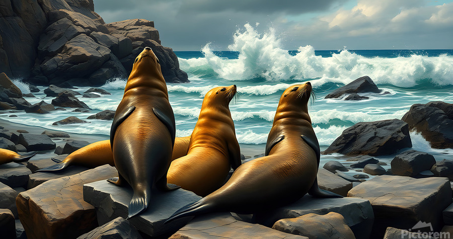 Four Seals On A Rocky Beach by Adam Holms [+]